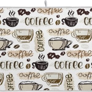 Coffee Mat Coffee Cup Drying Mat Coffee Maker Mat for Tabletop, Coffee Lover Microfiber Dish Drying Mats Cafe Bar Kitchen Spill Mat 16×18 Inch Medium
