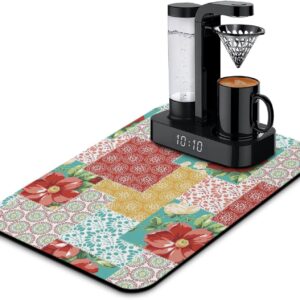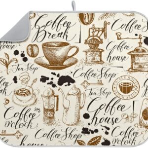 vvfelixl Coffee Mat Coffee Lovers Drying Mat Coffee Cup Spill Mats Microfiber Coffee Maker Mat for Countertops, Small, 16″ x 18″, Beige