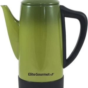 Elite Gourmet EC812G Vintage 50’s Electric Coffee Percolator Clear Brew Progress Knob Cool-Touch Handle Cord-less Serve, 12-Cup, Retro Green