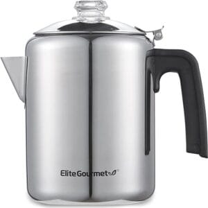 Elite Gourmet EC008 Classic Stovetop Coffee Percolator, Glass Clear Brew Progress Knob, Cool-Touch Handle, Cordless Serve, 8-Cup, Stainless Steel