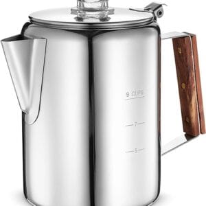 Eurolux Percolator Coffee Maker Pot – 9 Cups | Durable Stainless Steel Material | Brew Coffee On Fire, Grill or Stovetop | No Electricity, No Bad Plastic Taste | Ideal for Home, Camping & Travel