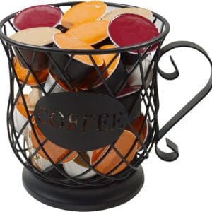 Coffee Pod Holder Mug Shape Multi Use K Cup Holder Coffee Station organizer Storage Wire Basket Food Storage for Counter Coffee Bar Black