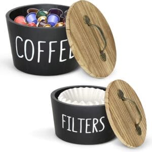 Coffee Pod Holder With Lid, Coffee Filter Holder Coffee Filter Storage Container Basket, Wood Coffee Station Organizer Coffee K Cup Organizer for Counter, Coffee Bar Accessories Storage Organizer