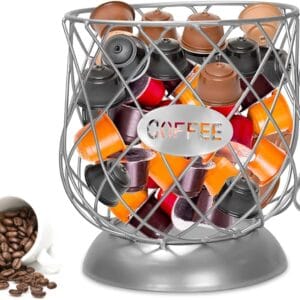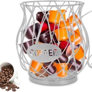 Coffee Pod Holder for K Cups, K Cup Holders for Counter, Mug Shape Coffee Pod Organizer, Coffee Pods Storage Basket for Coffee Bar (Large, Silver)