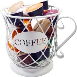 Coffee Pod Holder Mug Shape Multi Use K Cup Holder Coffee Station organizer Storage Wire Basket Food Storage for Counter Coffee Bar White