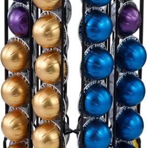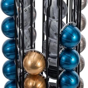 MyGift 360 Degree Rotating Coffee Pod Holder Stand Dispenser for Nespresso VertuoLine Pods, Black Metal Wire Spinning Carousel Coffee Capsule Vertical Rack – Holds 30 Capsules