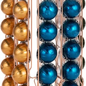 MyGift Stainless Steel Copper Metal Coffee Pod Holder Storage Organizer Stand with 360 Degree Rotating Carousel with Sleeve Storage Compartment, Compatible with Nespresso Vertuo Capsule