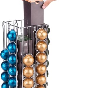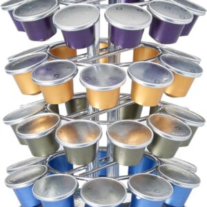 Nifty Nespresso Original Line Capsule Carousel – 40 Coffee Pod Storage Holder, Spins 360-Degrees, Lazy Susan Platform, Modern Chrome Design, Home or Office Kitchen Counter Organizer