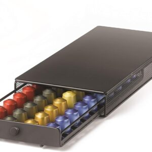 Nifty Small Nespresso Original Line Capsule Drawer – Black, 40 Capsule Pod Pack Holder, Non-Rolling Sliding Drawer, Under Coffee Pot Storage, Home Kitchen Counter Organizer