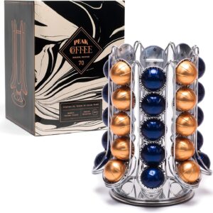 Peak Coffee Capsule Holder for 70 Nespresso Vertuo Vertuoline Pods – 40 Displayed on Outer with 30 Inside Carousel – Capsules Pod Storage Organiser 360° Rotating Rack Stand – Chrome