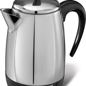 Farberware Electric Coffee Percolator, FCP412, Stainless Steel Basket, Automatic Keep Warm, No-Drip Spout, 12 Cup