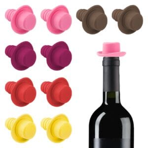 Adorila 10 Pack Silicone Wine Bottle Stopper, Reusable Wine Bottle Caps, Bottle Sealer Covers for Beverages Champagne Liquors