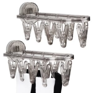 Adorila 2 Pack Clothes Drying Hanger with 9 Clips, Foldable Laundry Drying Rack with Suction Cup, Wall Mounted Hanging Drying Rack for Clothes Underwear Socks (Clear Grey)