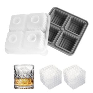 Adorila Silicone Ice Cube Tray, 4 Square Slots Ice Cube Trays for Freezer with Lid, Leak-Free Ice Ball Maker Mold for Whiskey, Cocktails, Bourbon (Grey)