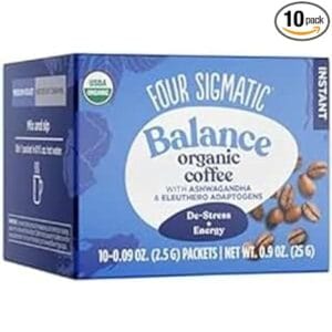 Four Sigmatic Adaptogen Organic Medium Roast Instant Coffee with Ashwagandha, Chaga & Tulsi, Immune Support & Stress Relief, Keto, Multicolored, 0.09 Oz, Pack of 10