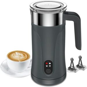 Milk Frother, Ovetedot 4-in-1 Milk Frother and Steamer, Scratch-Resistant Material,10oz Hot & Cold Milk Steamer with Temperature Control, Auto Shut-Off Frother for Latte, Cappuccino, Macchiato(Gray)