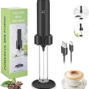BeEcone Store Rechargeable Milk Frother Handheld with USB-C Cable, Electric Drink Mixer, 14000RPM Powerful Electric Whisk/Coffee Frother for Latte, Matcha, Protein Powder, Hot Chocolate (Black)