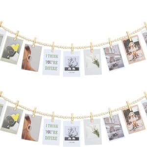 Hanging Photo Display Wall Decor, 2PCS Boho Wooden Bead Garland Collage Picture Frame with 9 Wood Clips for Bedroom, Living Room, Office, Dorm Decor, Photos Holder Teen Girl Gifts