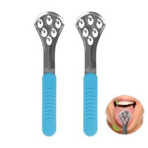 Adorila 2 Pack Tongue Scraper for Adults, Stainless Steel Tongue Cleaner, Fresher Tongue Tools for Oral Mouth (Blue)