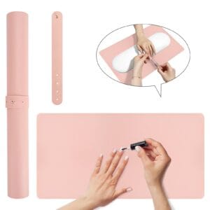 Adorila Pink Nail Art Table Mat, Large Multipurpose Waterproof Heat Resistant PU Leather Place Mat , Non-Slip Desk Pad for Desk & Office & Dinning Table (31.4″ x 15.7″)