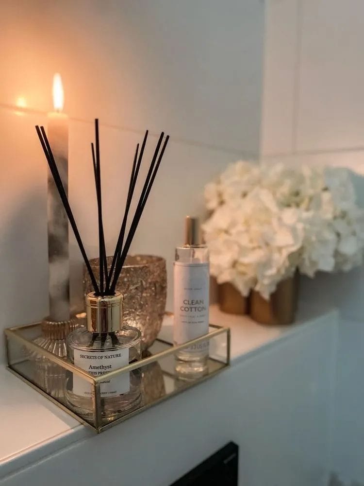 The sense of smell is associated with mood and memory. You can place candles, fireless aromatherapy, liquid aromatherapy, and melted wax lamps in different corners of your home to experience a different kind of aroma and atmosphere.
