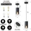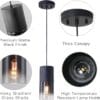 2-Pack Black Pendant Light Fixtures, Adjustable Modern Pendant Lights for Kitchen Island, Industrial Glass Pendant Lights for Dining Table Hallway Bedroom Living Room