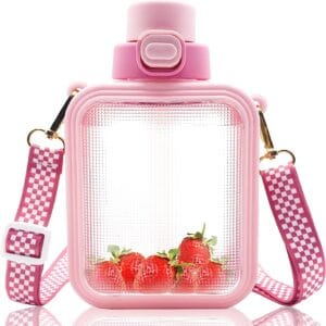 Adorila Water Bottle with Strap Kids, Cute Cup Drinking Bottle with Two Straws, Portable Leakproof Sports Bottle for Outdoor Travel (Blue, 500ml)