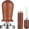 51mm Espresso Tamper, WDT Tool Set Coffee Calibrated Tamper with Excellent Quality Spring Loaded Flat 304 Stainless Steel Base Barista Wooden Handle Press, 6 Needles 0.4mm Espresso Distribution Tools