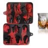 Adorila 2 Pack Pirate Skull Ice Cube Mold, Silicone Ice Cube Tray for Halloween, Reusable Ice Makers for Whiskey, Cocktails and Drinks (Black Red)