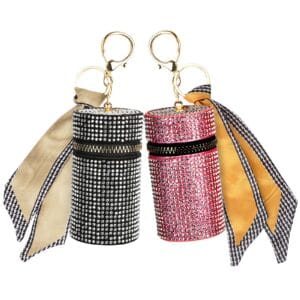 Adorila 2 Pack Lipstick Case Keychain, Leather Diamond Lip Gloss Holder, Travel Lipstick Organizer for Purse Perfume Fingernail Polish (Black & Red)