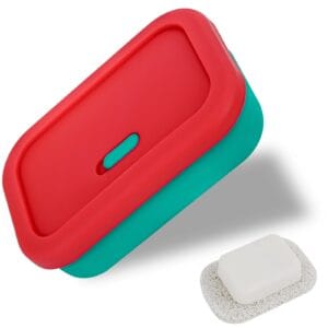 Adorila Leak Proof Travel Soap Container, Silicone Soap Dish with Draining Layer, Portable Bar Soap Holder with Lid for Camping, Gym