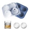 Adorila Large Silicone Ice Cube Tray, 4 Round Slots Ice Cube Trays for Freezer with Lid, Leak-Free Ice Ball Maker Mold for Whiskey, Cocktails, Bourbon (Blue)