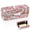 Adorila Lipstick Case with Mirror, Rhinestone Crystal Lipstick Organizer for Travel, Portable Bling Diamonds Lip Gloss Storage Holder (White)