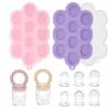 Adorila Silicone Food Freezer Tray Set, Food-Grade Teething Toys & Pacifier with Feeding Safely, Fruit Food Feeder Pacifier