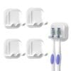 Adorila Toothbrush Holders Wall Mounted Cup Holder, Plastic Toothbrush Hanger for Shower Bathroom, 2 Slots Adhesive Toothbrush Storage Hook (4 Packs)