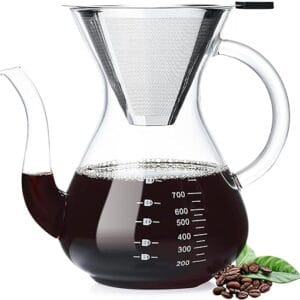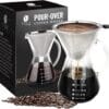 Bean Envy Pour Over Coffee Maker – 5 Cup Borosilicate Glass Carafe – Rust Resistant Stainless Steel Paperless Filter/Dripper – Includes Custom Silicone Sleeve