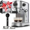 Beiooya Espresso Machine 20 Bar, Espresso Maker with Milk Frother Steam Wand, Professional Stainless Steel Coffee Machine with 37oz Water Tank for Home Cappuccino, Latte, Mom