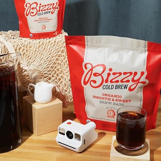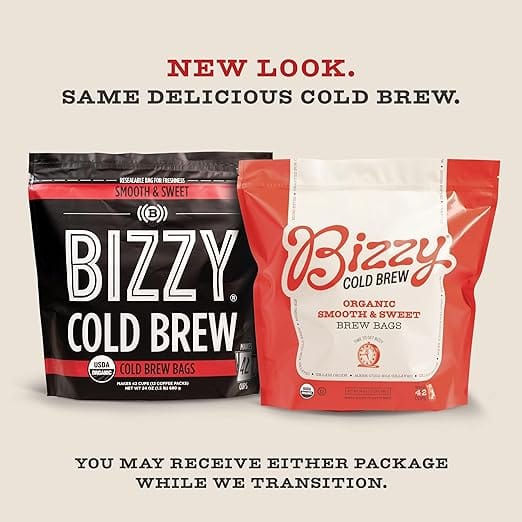 Bizzy Organic Cold Brew Coffee | Smooth & Sweet Blend | Coarse Ground Coffee | Medium Roast | Micro Sifted | Specialty Grade | 100% Arabica | Brew Bags | 12 Count | Makes 42 Cups