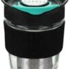 Cold brew coffee cup | For Grab-n-Go | 12oz | Durable glass | stainless steel filter | silicon sleeve | Black design with a Blue lid
