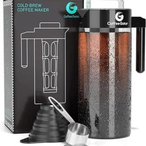 Cold Brew Mason Coffee Maker – 64oz Iced Coffee Pitcher with Stainless Steel Mixing Spoon & Super Dense Filter 3 Steps Finish Cold Brew Coffee, Classic BPA Free Sturdy Mason jar Pitcher Easy to Clean