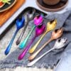 Creative 304 Stainless Steel Salad Fork Spoon Pasta Forks Tableware Set Dinnerware Sets Rose Gold Silver Black Cutleries 1PCS
