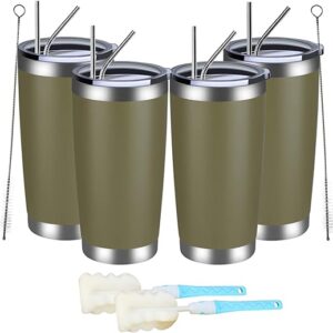 MEWAY 20oz Tumbler 4 Pack Double Wall Vacuum Insulated Travel Mug Bulk, Stainless Steel Tumblers with Lid and Straw, Durable Powder Coated Coffee Cups for Cold & Hot Drinks (Army Green, 4)