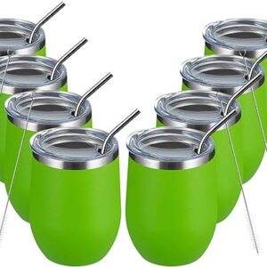 MEWAY 12oz/8 Pack Wine Tumbler Glasses with Lid – Stemless Double Wall Vacuum Stainless Steel Travel Tumbler – Keeping Cold & Hot for Wine,Coffee,Cocktails,Gifts (Fruit green,Set of 8)
