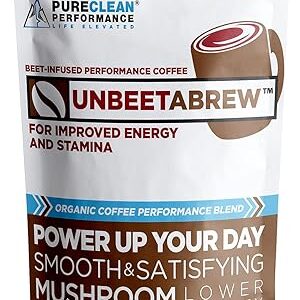 PureClean Performance UNBEETABREW Performance & Health Blend – Instant Beet Root Mushroom Coffee with L-Theanine & BioRibose – Energy, Focus, & Stamina – Vegan, Organic, USA Made (1 Bag 30 Servings)