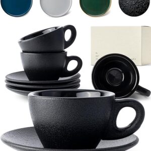 KIVY Cappuccino cups set of 4 [6oz] – Thick-walled stoneware cappuccino cup set for latte art – Latte mugs – Latte cups – Latte mug – Latte art cup black – Ceramic latte cup and saucer
