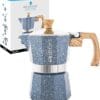GROSCHE Milano Moka pot, Stovetop Espresso maker, Greca Coffee Maker, Stovetop coffee maker and espresso maker percolator (Indigo, 6 cup)
