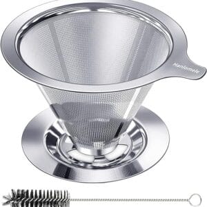 Hanlomele Pour Over Coffee Dripper, Paperless Reusable Coffee Filter, Pour Over Coffee Maker for Single Cup Brew, Double Mesh Design of Stainless Steel Cone Filter for Perfect Extraction (1-2 Cup)