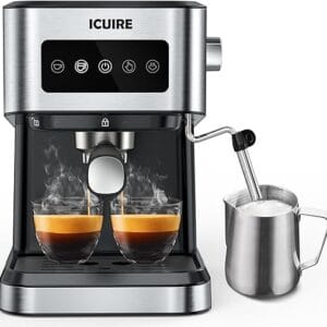 ICUIRE Espresso Machine, 20 Bar Compact Steam Espresso Coffee Machine with Milk Frother, Digital Touch Panel, 37 Oz Removable Water Tank for Espresso Make
