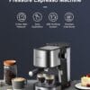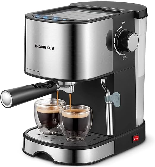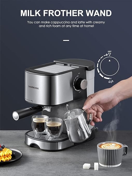 Ihomekee Espresso Machine 15 Bar Pump Pressure, Espresso and Cappuccino Coffee Maker with Milk Frother/Steam Wand for Latte, Mocha, Cappuccino, Silver+Black