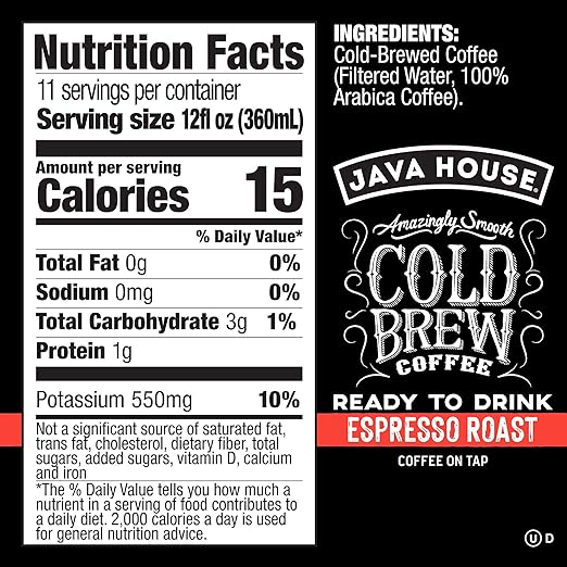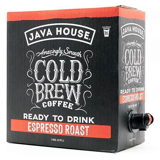 Java House Cold Brew Coffee On Tap, (128 Fluid Ounce Box) Not a Concentrate, No Sugar, Ready to Drink Liquid (Espresso, Pack of 1)